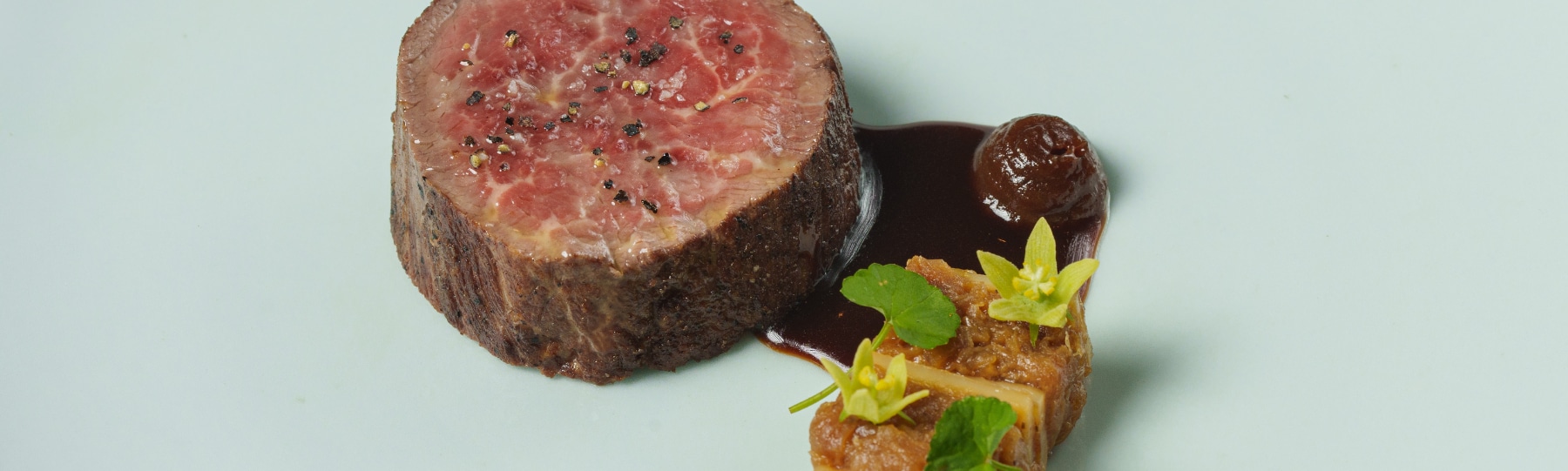 Slow-cooked pork belly, green peppercorn, pepper leaf